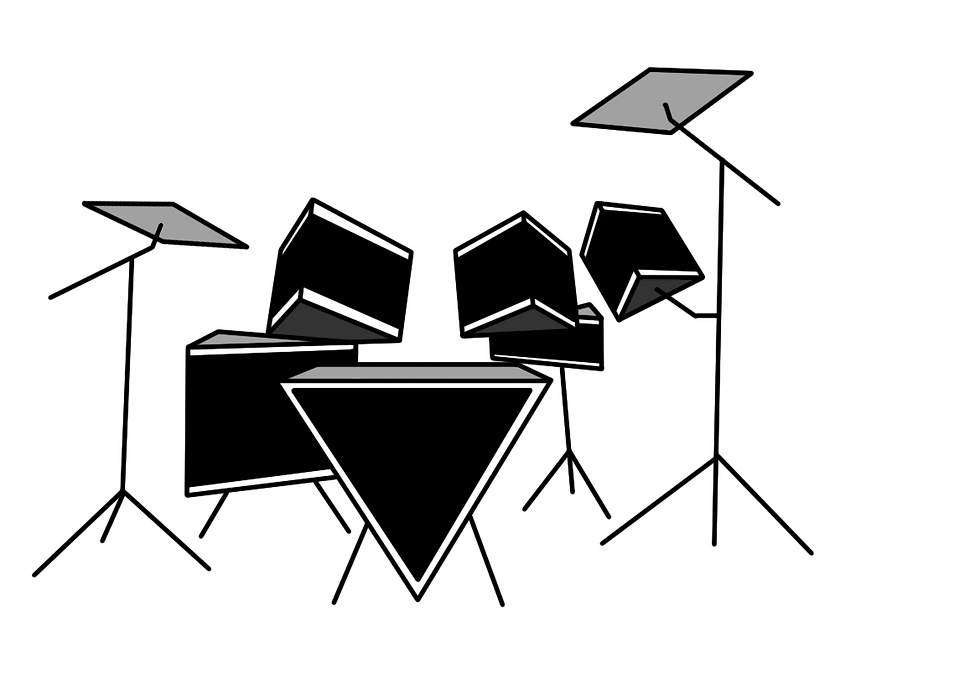 The contemporary re-interpretation of my story is set in a bar / music venue. Because of this, I have 3 main settings; an exterior shot of the building, the stage, and the bar. I have illustrated each background in Adobe Photoshop - making sure to keep each element on a separate layer to help when it comes to animating. I have maintained the geometric style when designing the backgrounds.